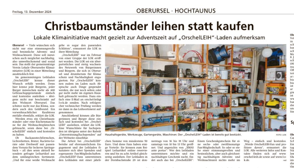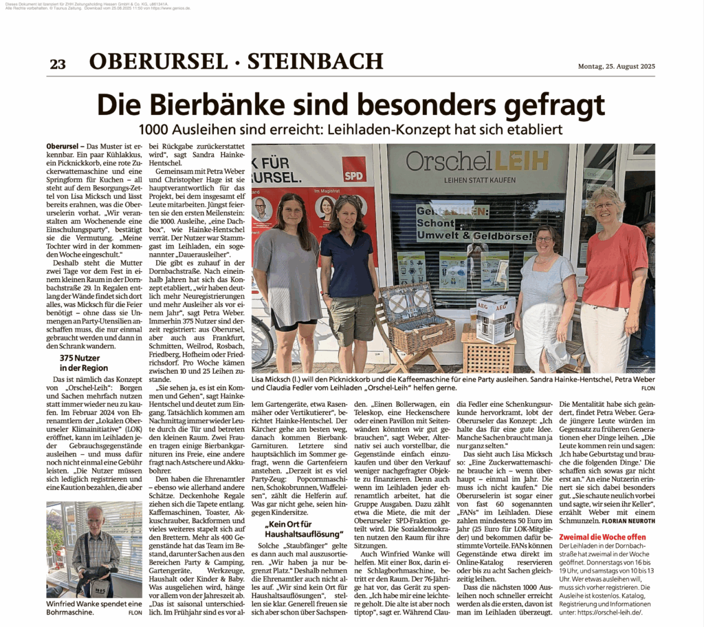 So titelte die Oberurseler Woche die Eröffnungsfeier der „OrschelLeih“ in der Dornbachstraße 29.